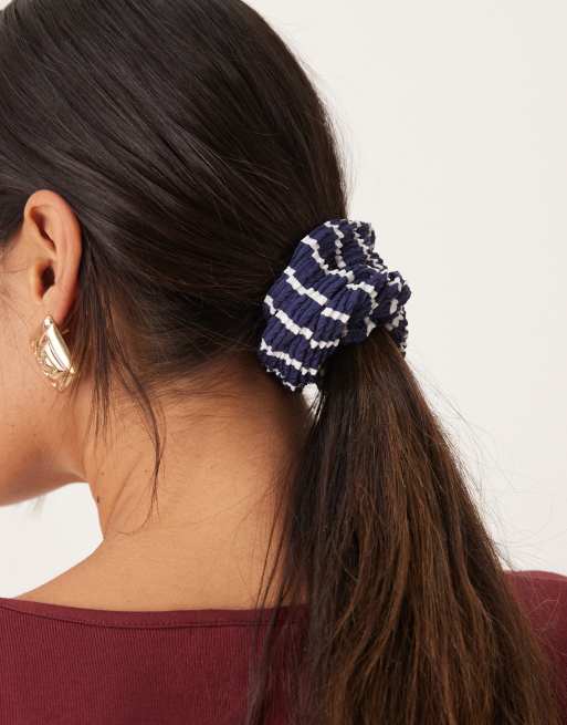 Accessorize – Gerippter Scrunchie-Haargummi in gestreiftem Marineblau