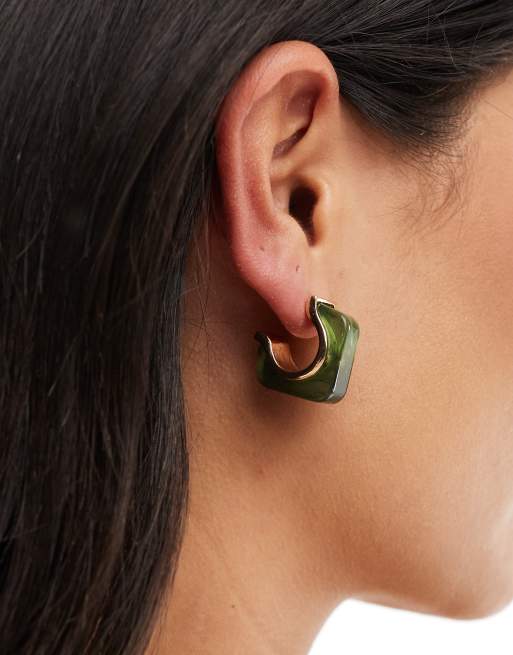 Accessorize – Kelly – Quadratische Creolen aus Kunstharz in Grün