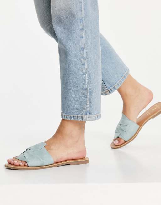 Accessorize – Pantoletten-Sandalen aus Wildleder in Minzgrün mit überkreuztem Riemchen