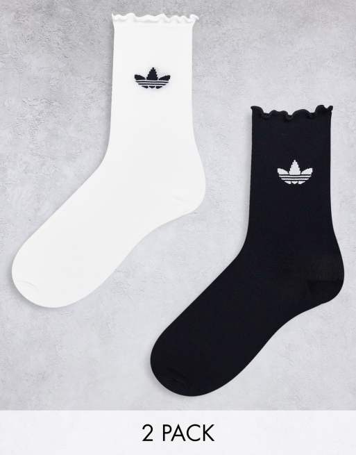 adidas Originals – 2er-Pack gerüschte Socken in Schwarz und Weiß