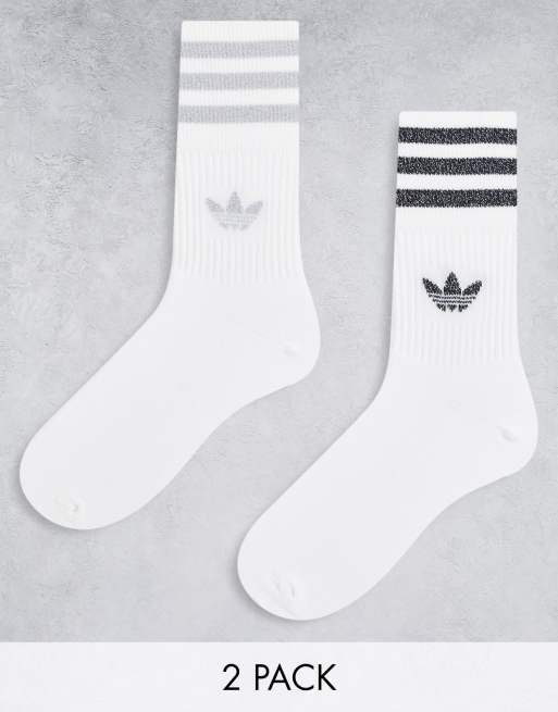 adidas Originals – 2er-Pack mittelhohe Glitzer-Socken in Weiß/Silber