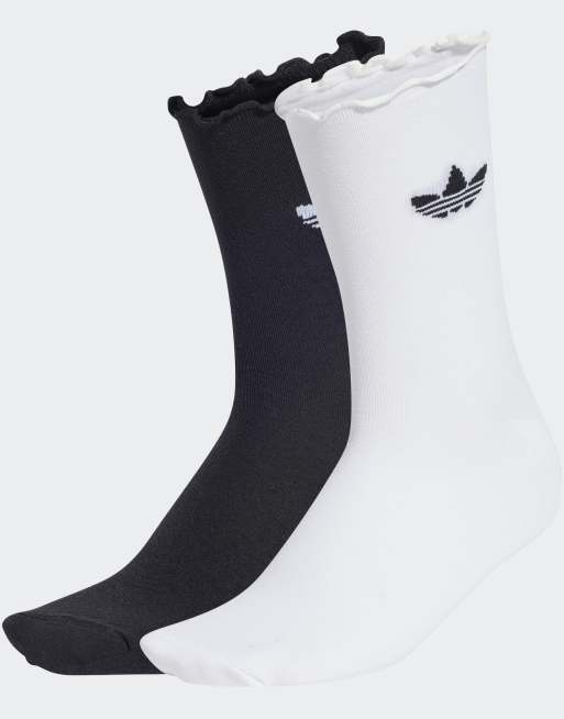 adidas Originals – 2er-Pack Rüschensocken in Weiß und Schwarz