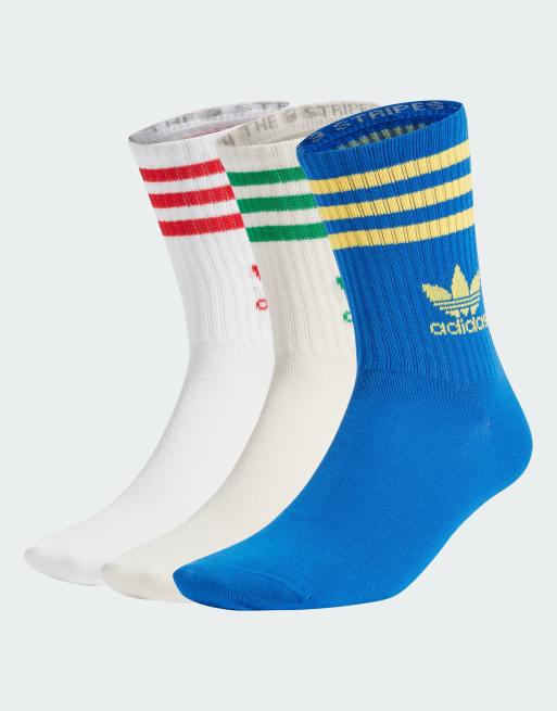 adidas Originals – 3 Paar mittelhohe Crew-Socken in Blau