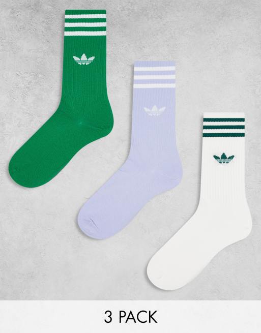 adidas Originals – 3er-Pack hohe Socken in Weiß, Grün und Lila