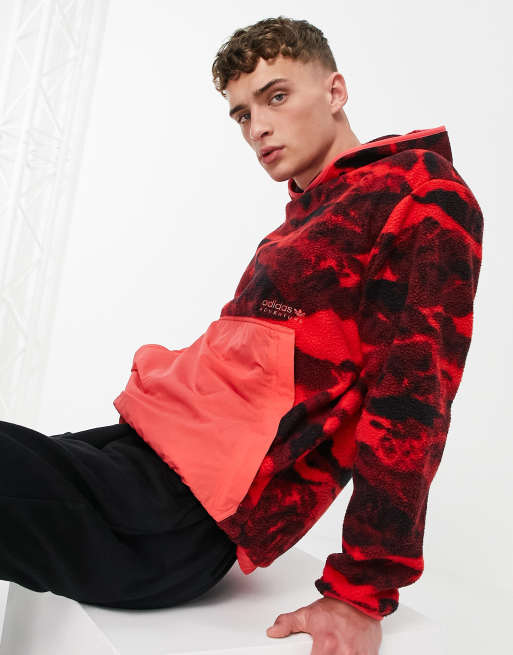 adidas Originals – Adventure – Fleece-Kapuzenpullover in Rot mit Berg-Print