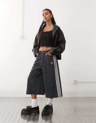 adidas Originals – Denim-Jorts in Schwarz mit Leopardenmuster