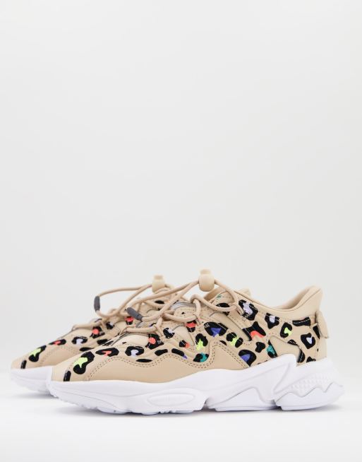 adidas Originals – Ozweego Plus – Sneaker in Beige mit buntem Leopardenprint