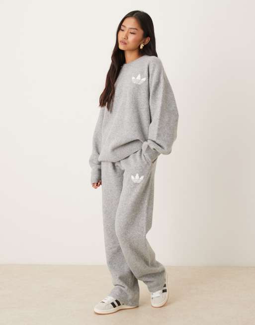 adidas Originals – Pullover und weit geschnittene Jogginghose aus Strick in Grau