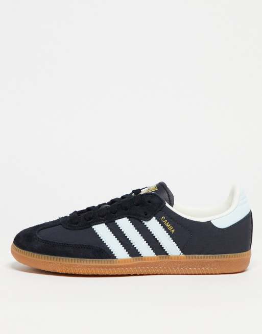 adidas Originals – Samba – Sneaker in Anthrazit mit hellblauen Streifen
