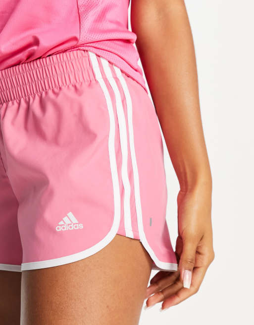 adidas – Lauf-Shorts in Rosa mit drei Streifen