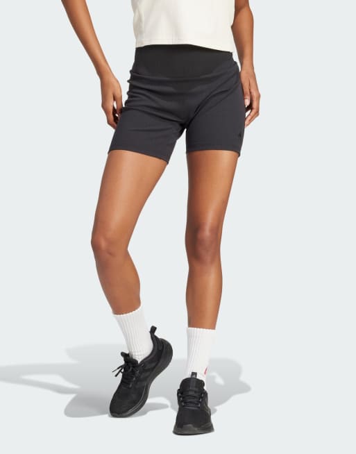 adidas – Lounge – Gerippte Shorts in Schwarz mit hohem Bund