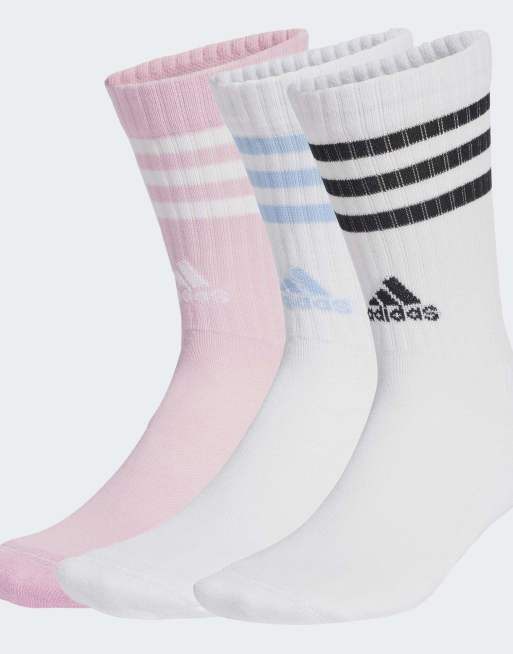 adidas performance – 3 Paar gepolsterte Crew-Socken in Weiß / Weiß / echtes Rosa mit den drei Streifen