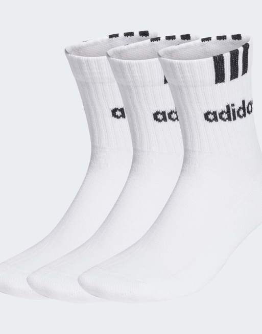 adidas Performance – 3 Paar gepolsterte, halbhohe Crew-Socken in Weiß / Schwarz mit drei Streifen und linearem Detail