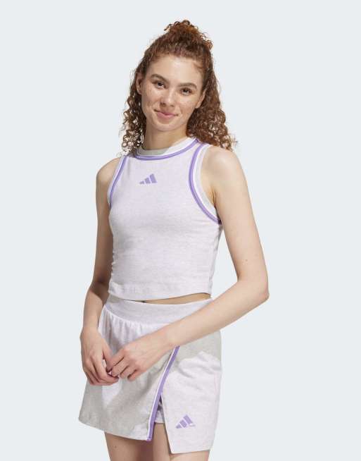 adidas Performance – Essentials – Cropped-Tanktop aus Baumwolle in meliertem Hellgrau mit Farbakzent