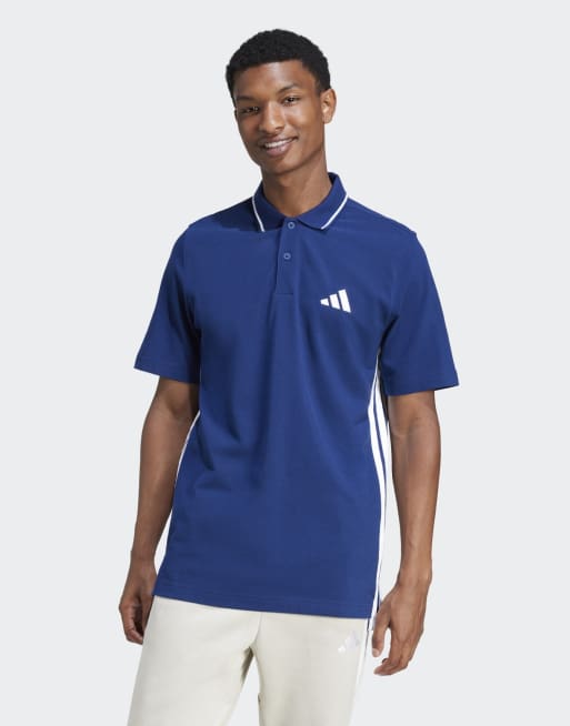 adidas Performance – Essentials – Pikee-Polohemd in Dunkelblau / Weiß mit den 3 Streifen