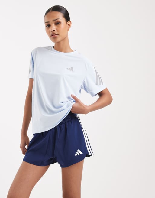 adidas Performance – Pacer – Trainings-Shorts aus Webstoff in Dunkelblau/Weiß mit hohem Bund