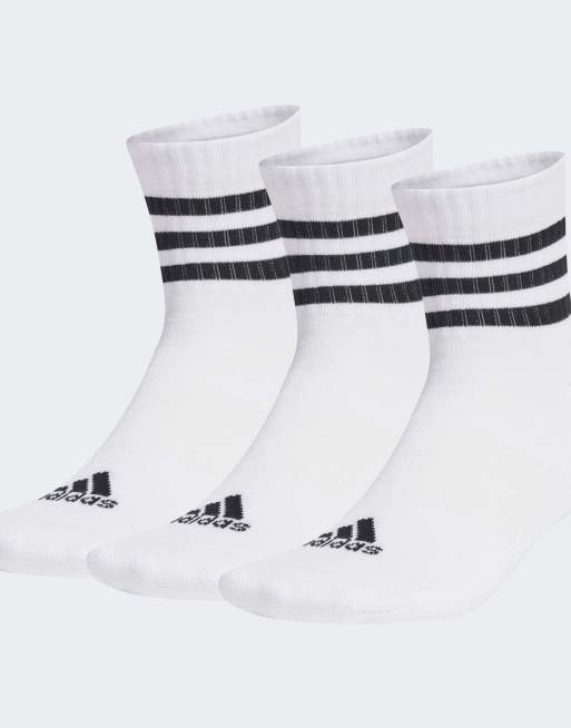 adidas Performance – Sportswear – 3 Paar niedrig geschnittene, gepolsterte Socken in Weiß / Schwarz mit drei Streifen