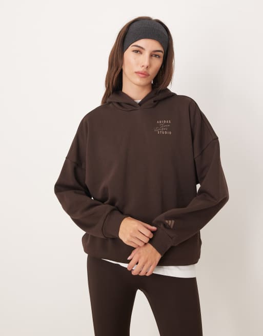 adidas Performance – Studios – Kapuzenpullover in Braun mit den drei Streifen