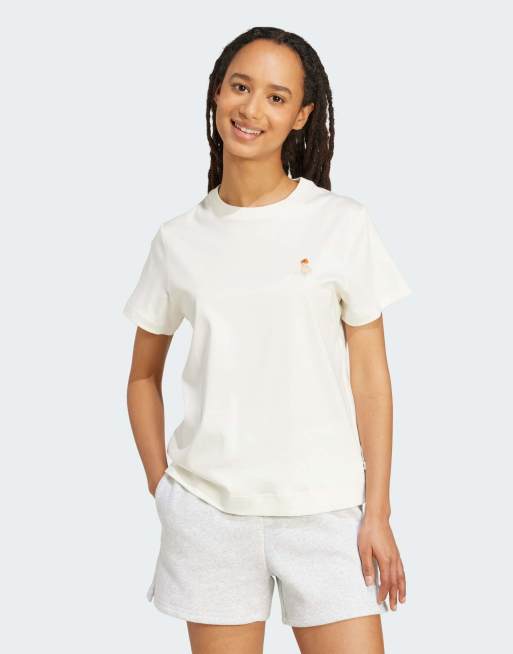 adidas Performance – T-Shirt in Wollweiß mit Katzen-Aufnäher