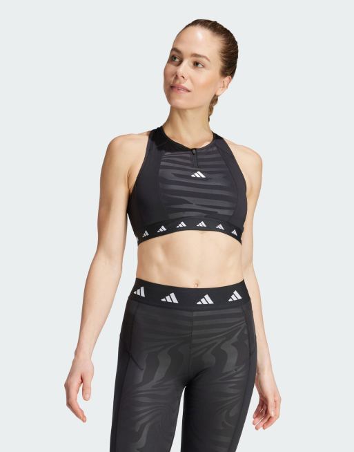 adidas – Powerimpact Training Medium-Support Techfit – Hochgeschlossener BH in Schwarz mit Reißverschluss