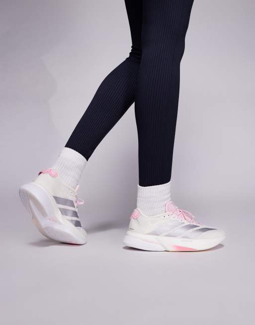 adidas Running – Adizero Boston 13 – Laufschuhe in Weiß und Rosa