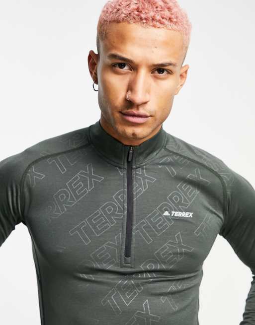 adidas – Terrex Trace – Sweatshirt mit kurzem Reißverschluss in Khaki