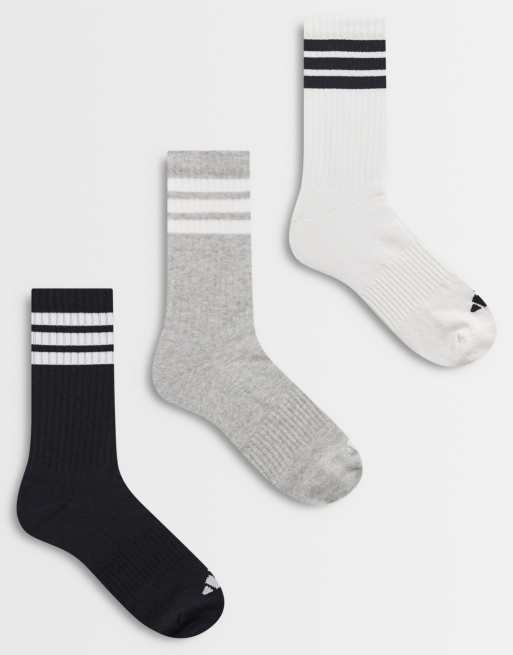 adidas Training – 3er-Pack Crew-Socken in Schwarz und Weiß und Grau mit 3 Streifen