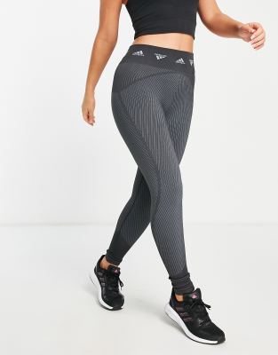 adidas Training – Aeroknit – 7/8-Leggings mit sich wiederholendem Logo in Schwarz