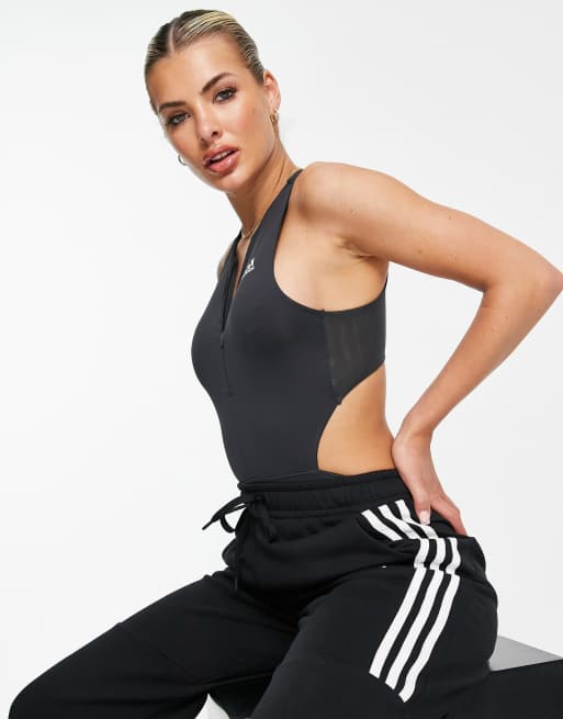 adidas – Training – Body mit Zierausschnitt in Schwarz