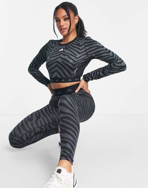 adidas Training – Hyperglam – Leggings in Schwarz mit Zebramuster
