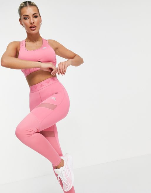 adidas – Training – Leggings in Rosépink mit Logobund