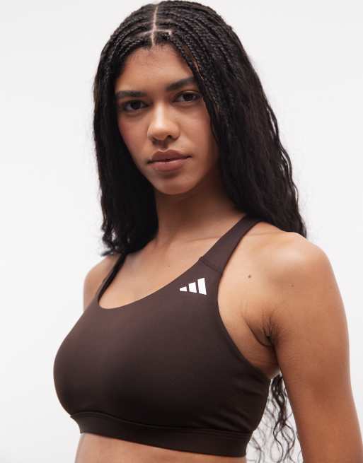 adidas Training – Optime Essentials – BH in Braun mit leichter Stützfunktion
