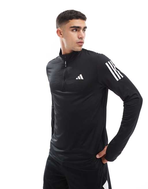 adidas Training – Own The Run – Oberteil in Schwarz mit kurzem Reißverschluss