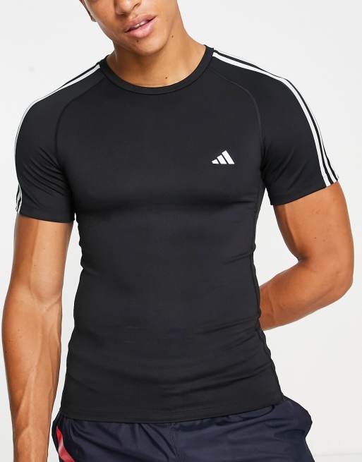 adidas – Training Tech Fit – T-Shirt in Schwarz mit 3 Streifen