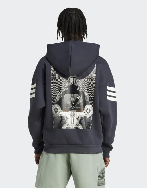 adidas – Star Wars The Mandalorian – Kapuzenpullover in Night Grey mit Rückengrafik