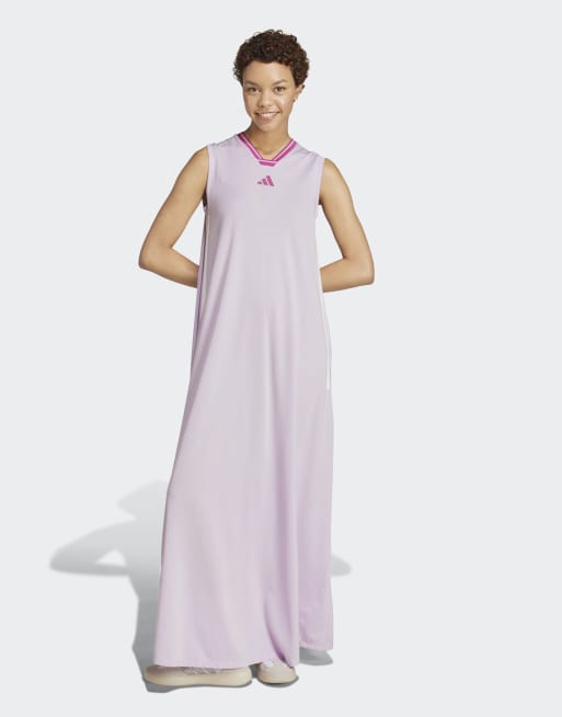 adidas – Tiro Cut – Langes Kleid aus weichem Netzstoff in Ice Lavender