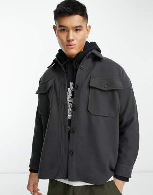 ADPT – Gefilzte Oversized-Hemdjacke in Dunkelgrau