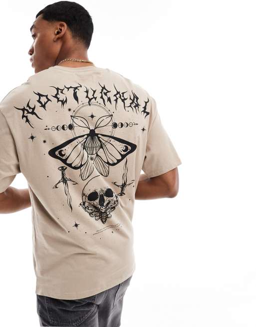 ADPT – Oversize-T-Shirt in Beige mit Schmetterlings-Totenkopf-Print am Rücken