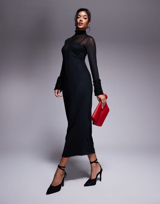 AFRM – Ariel – Maxikleid aus Netzstoff in Schwarz mit Rüschen an den Ärmeln