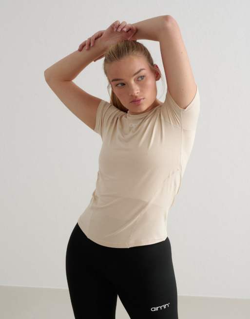 Aim'n – Café au Lait – Weiches, kurzärmliges Basic-T-Shirt in Beige
