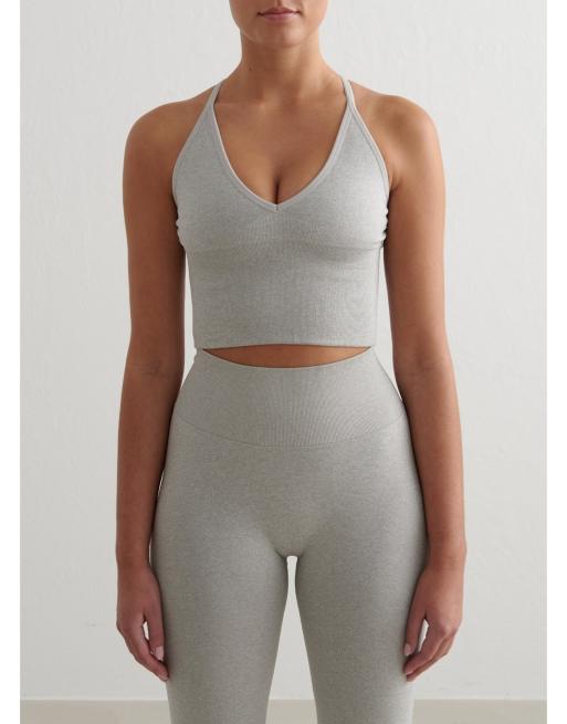 Aim’n – Nahtloses, formendes Bustier in meliertem Grau mit überkreuzter Rückseite