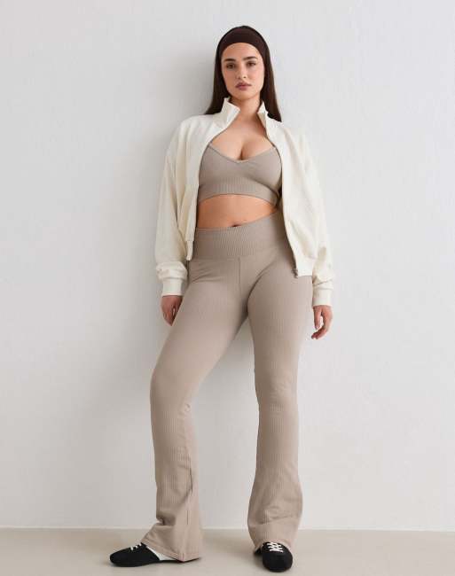 Aim'n Petite – Gerippte, nahtlose und ausgestellte Leggings in dunklem Lehmbeige