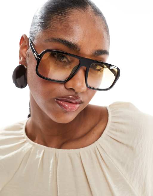 AJ Morgan – Eckige Piloten-Sonnenbrille in Schwarz mit gelben Gläsern