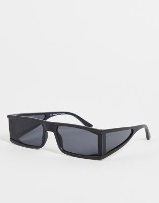 AJ Morgan – Rechteckige Sonnenbrille in Schwarz mit Neon-Deko und seitlichen Gläsern