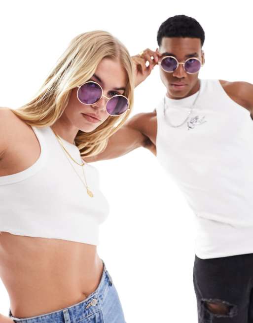 AJ Morgan – Runde Sonnenbrille in Gold/Lila