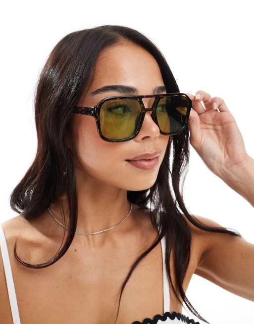 AJ Morgan – York – Pilotenbrille in Schildpatt-Optik mit grünen Gläsern