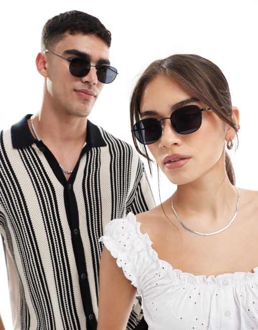 A.Kjaerbede – Hello – Runde Sonnenbrille mit schwarzem Metallrahmen