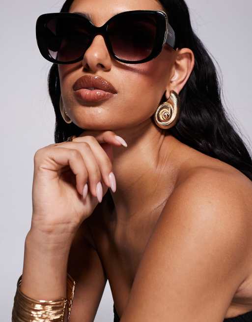 ALDO – Dorkay – Breite, eckige Sonnenbrille in Schwarz