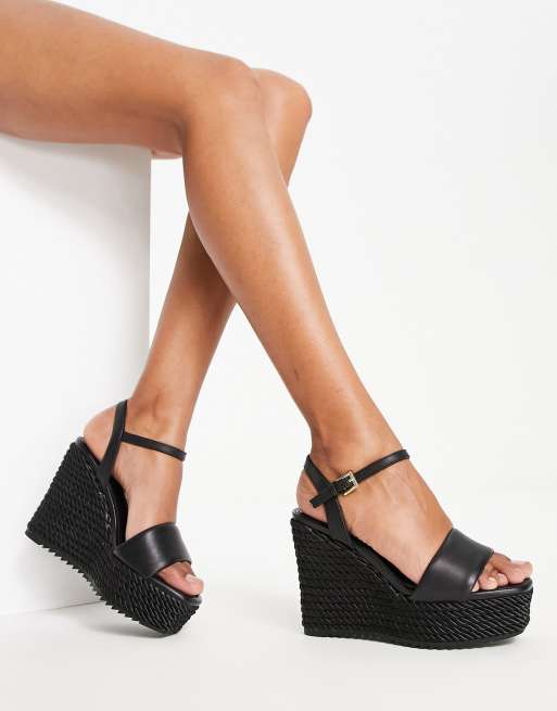 ALDO – Jeigh – Sandaletten aus schwarzem Leder mit Keilabsatz