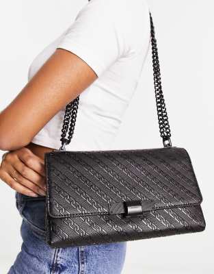 ALDO – Schema – Umhängetasche in Schwarz mit Monogramm-Muster